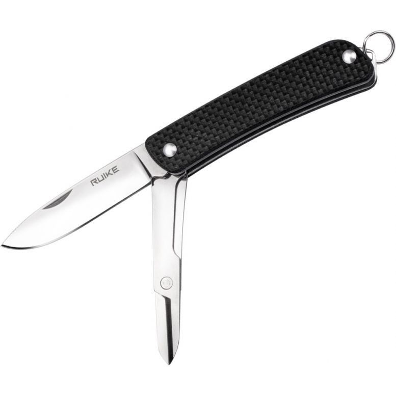 Крім ножа модель Ruike S22 володіє ще одним робочим інструментом – складними ножицями. Вони розміщені всередині рукоятки абсолютно по тому ж принципу, що і перший інструмент. Наявність цієї додаткової функціональності допомагає користувачеві виконати більшу кількість завдань, які можуть бути актуальними в поїздках на природу.