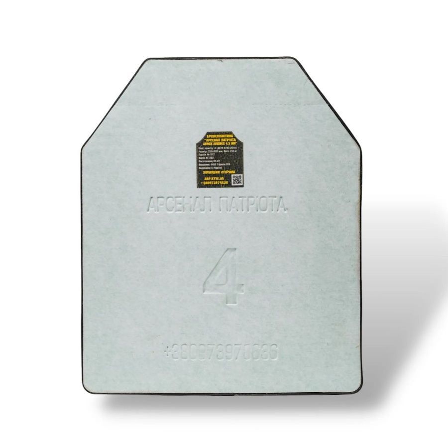 В плитах використовується бронесталь найкращого у світі виробника – шведського концерну SSAB, Armox Advance твердістю 58-63 HRC з номінальною товщиною всього 4.5 мм! Правильна обробка цієї сталі дозволила нам виготовити плити, які відповідають 4 класу ДСТУ з найменшою вагою – всього 2.8 кг