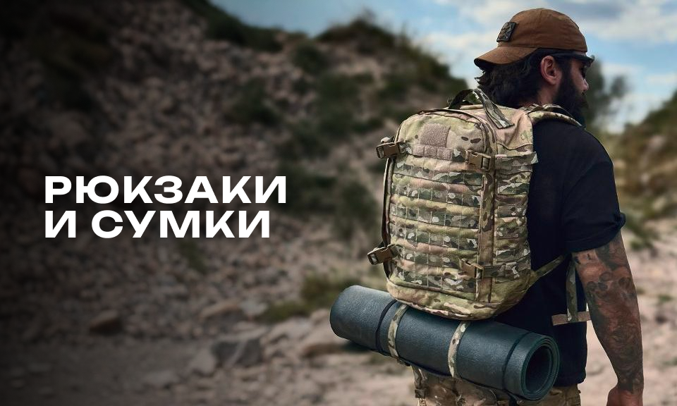 Спорядження: рюкзаки, сумки, плитоноски, розвантажувальні системи, підсумки, футляри, ножі та багато іншого.