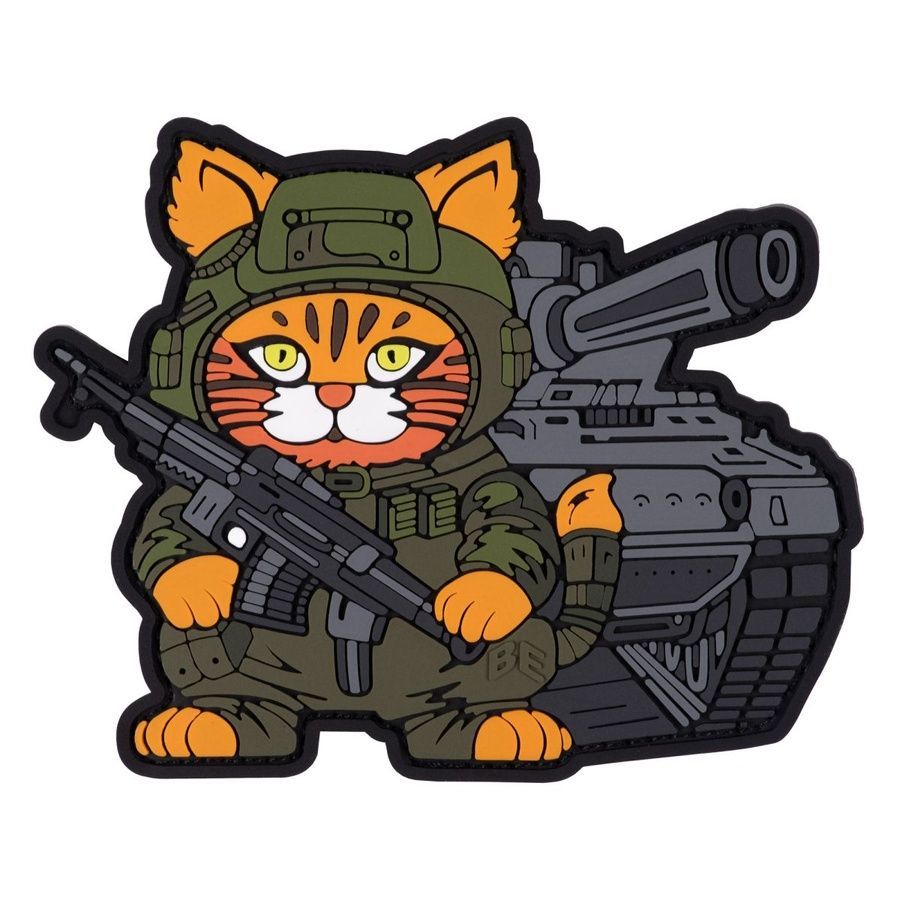 ПВХ Патч 'Кот-танкист' – символ военной смелости и преданности. На нем изображен котик, удерживающий в кавычках ружье, стоя рядом с танком. Этот патч выражает решительность и готовность вступить в любые сражения, а его простой, но выразительный дизайн делает его отличным атрибутом для Вас.