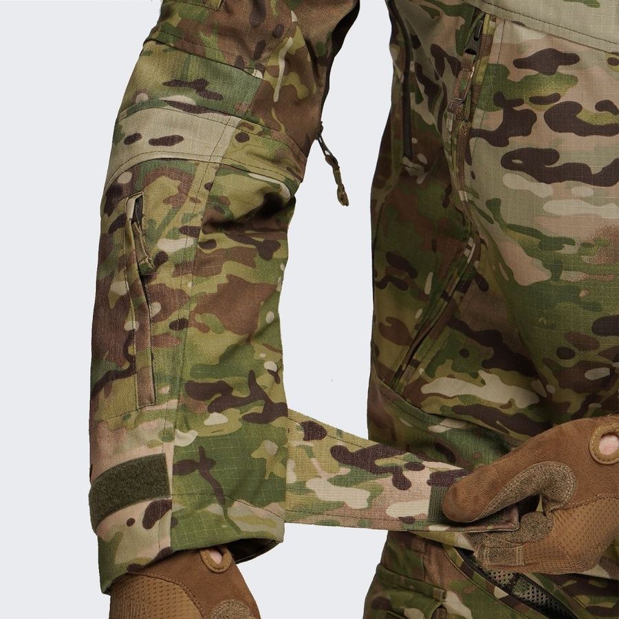 Для активного використання в різних умовах лікті, плечі, поперек та пояс, які зазнають найбільшого впливу, додатково посилені тканиною CORDURA® 500d MultiCam Brookwood® USA, що надає більшої стійкості до стирання та розриву, та збільшують захист під час проведення операцій. Куртка максимально адаптована для носіння бронежилету, РПС, та іншого оснащення